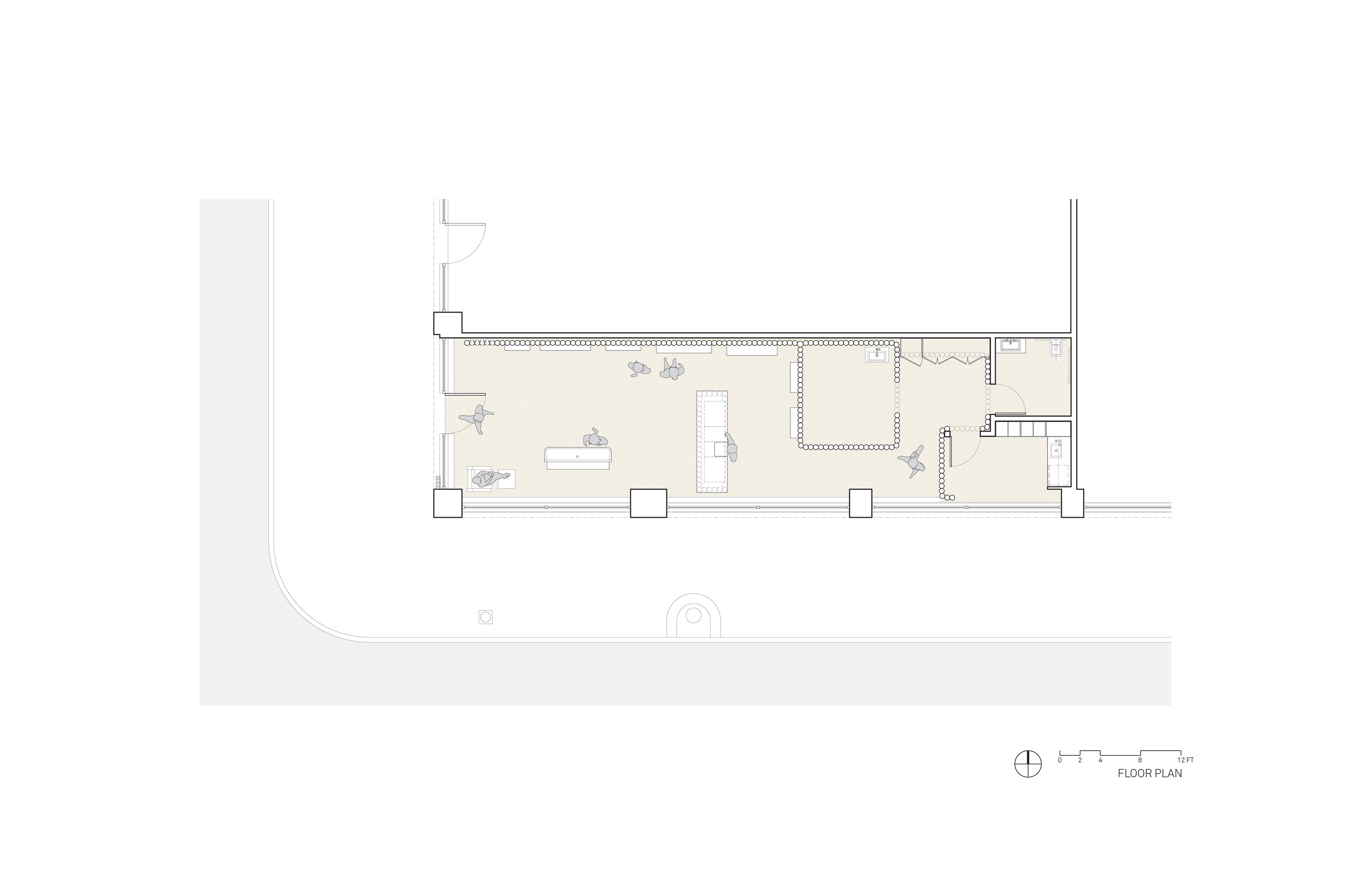 Nestled in the ground floor corner of the 1929 Eastern Columbia Building, Aesop Downtown, the company’s largest store to date, is situated in Los Angeles’ historic theatre district, at the edge of its Fashion District and adjacent to the famous Orpheum Theatre. Taking cue from the neighborhood culture and the empty bolts of fabric strewn about costume shops and fashion houses, the environment consists of 6-inch round cardboard tubes to create walls and furniture. This natural palette is warm and inviting, projecting a soft glow to the store’s interior and onto the street and sidewalk. Countertops are made of recycled paper, complimenting the cardboard tube wall finish. Product esting sinks are of a vintage style and floors are the natural concrete of the 1929 historic building. A long storefront captures a view of the busy street and projects a comfortable and unobtrusive space, inviting those outside to enter.