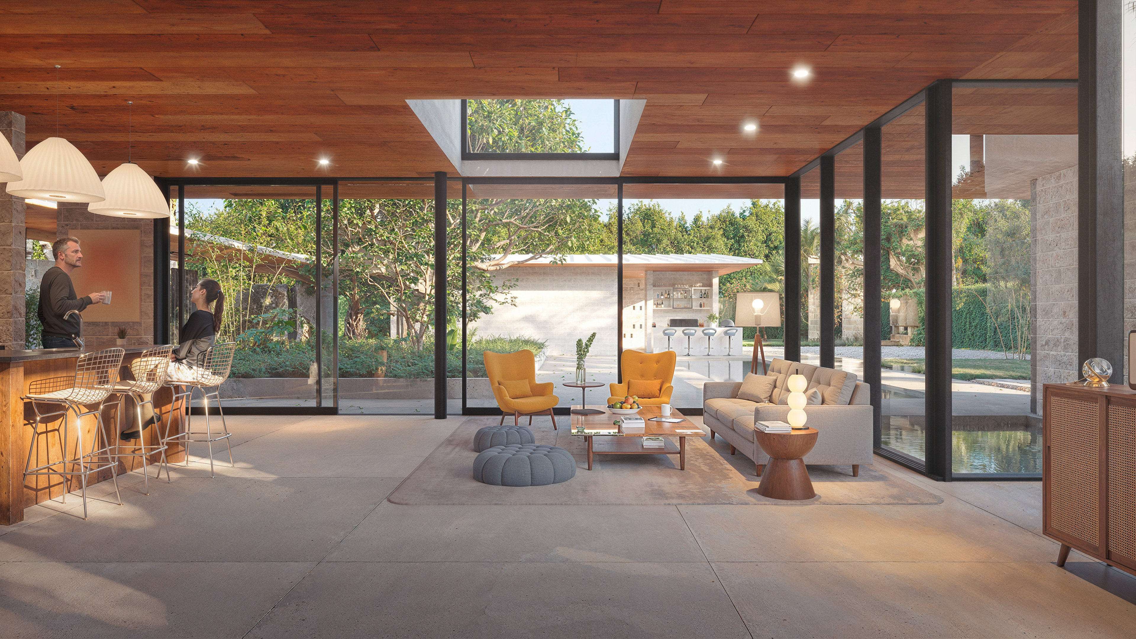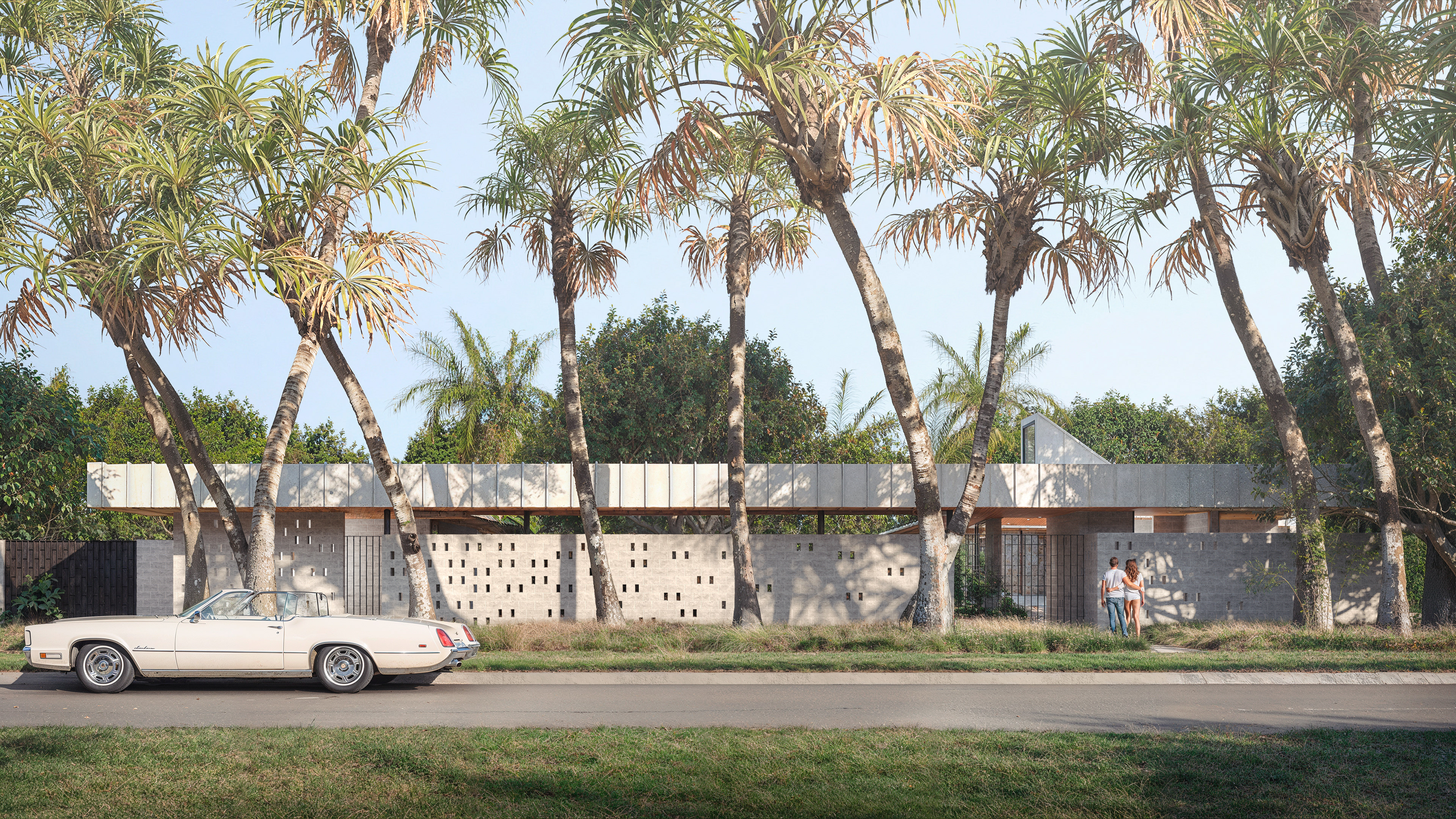 Nestled in a historic neighborhood near the Atlantic Ocean in Fort Pierce, FL, the OH-ouse is a refined expression of mid-century modern design, seamlessly blending timeless architectural principles with the unique character of its coastal setting. This 2,500-square-foot courtyard home is thoughtfully arranged to embrace both privacy and openness, creating a serene retreat within the vibrant historic fabric of the neighborhood. Clean lines, expansive glass openings, and natural materials define the home’s modern aesthetic, while deep overhangs and shaded outdoor spaces provide respite from the Florida sun. At the heart of the home, a lush courtyard serves as a tranquil extension of the living space, fostering a seamless connection between the indoors and outdoors. A separate Casita, positioned to enhance privacy and flexibility, offers a secluded guest suite or creative workspace, reinforcing the home’s emphasis on adaptable living. The courtyard’s focal point—a sun-drenched pool—becomes a private oasis, reflecting the influence of Florida’s iconic mid-century residences, where lifestyle and leisure merge effortlessly. Inspired by the breezy, elegant designs of Central Florida’s mid-century modern homes, the OH-ouse reinterprets classic elements with contemporary sensibilities. Passive design strategies, including cross-ventilation and shaded outdoor rooms, ensure comfort year-round, while a material palette of warm woods, textured concrete, and glass establishes a dialogue with the surrounding landscape. Rooted in both history and modernity, the home embodies a refined coastal lifestyle, offering a timeless retreat just moments from the Atlantic shoreline.