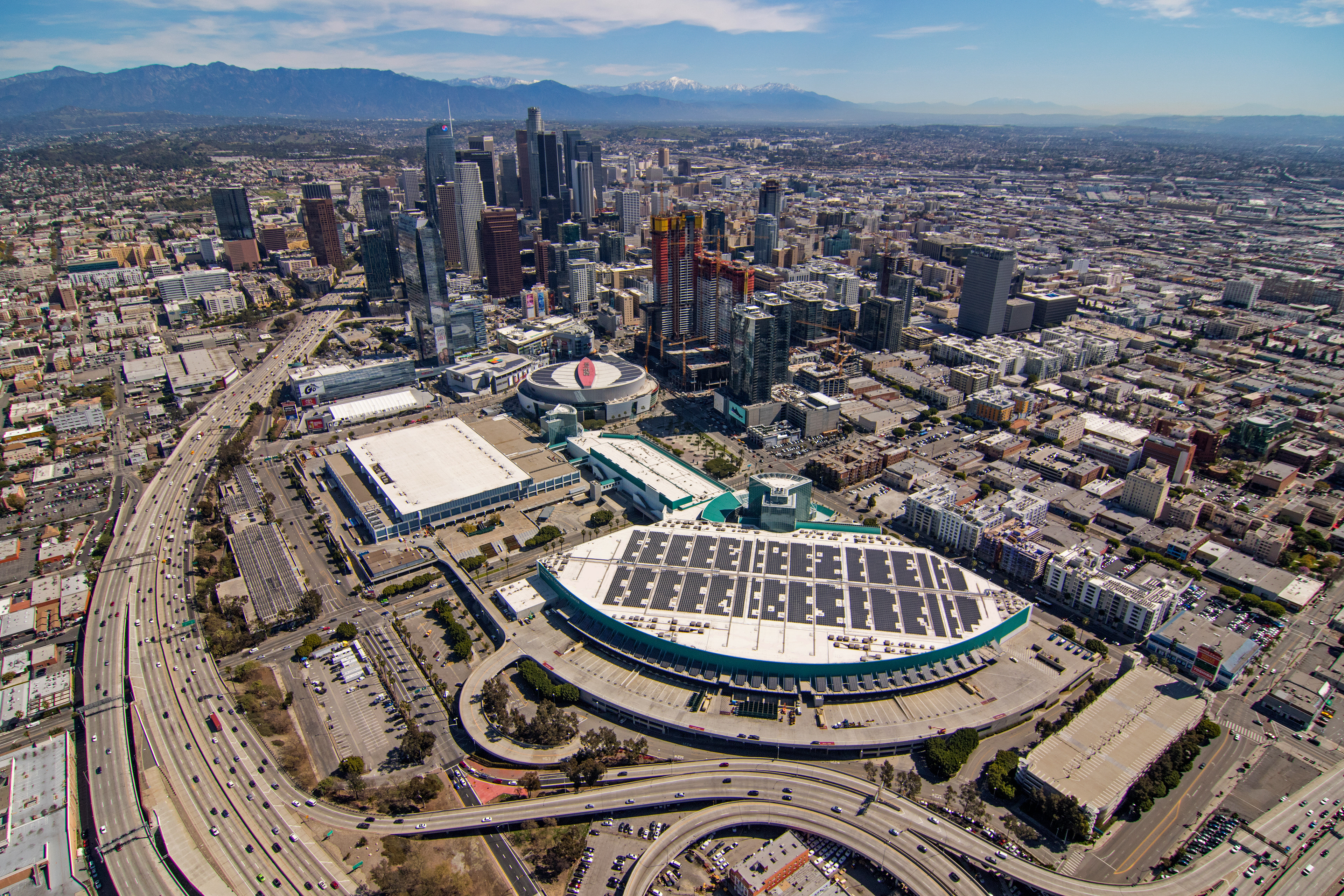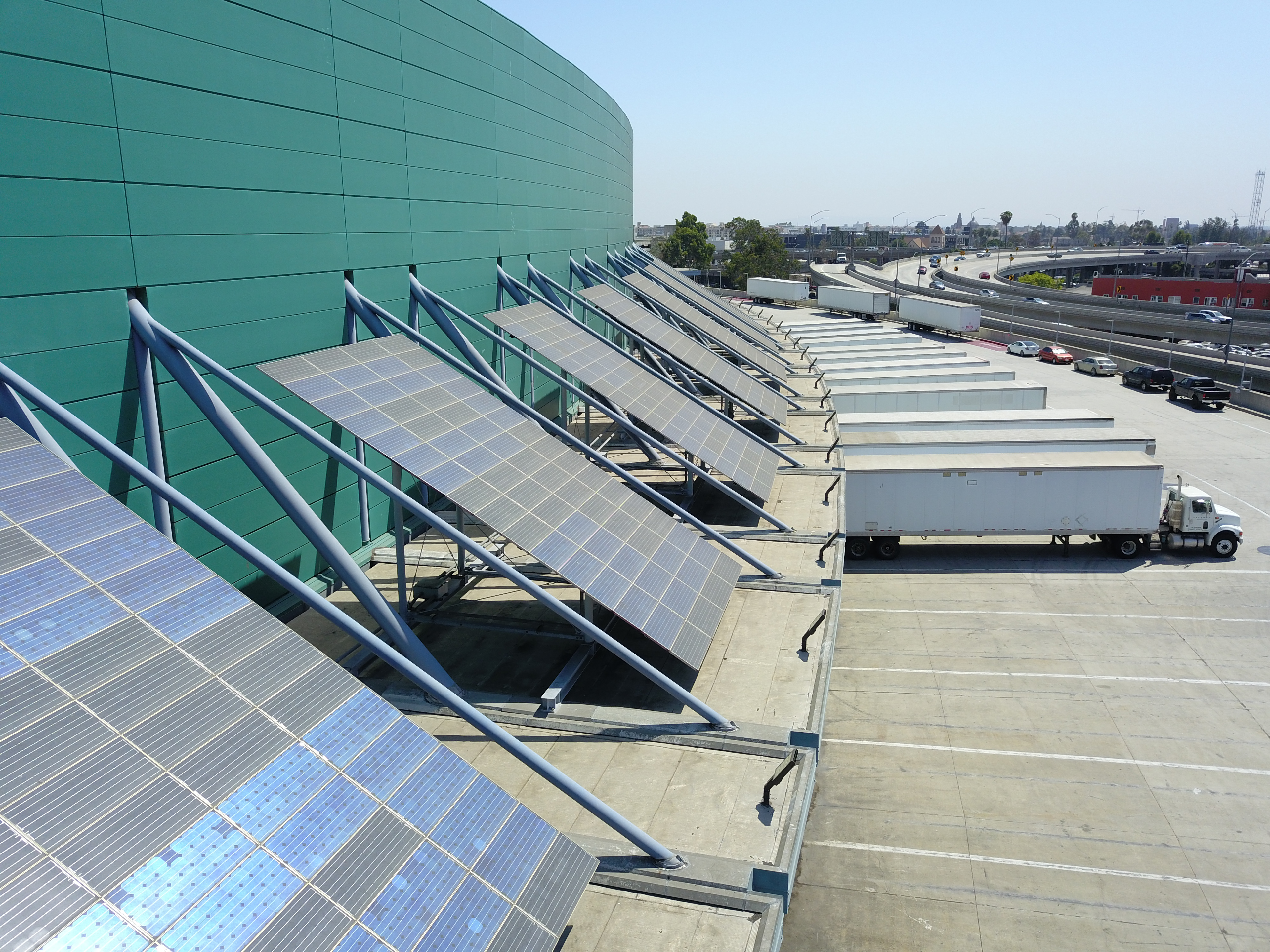 This is the largest solar system on a public building west of the Mississippi river. The 2.2 mega watt system. The project includes the construction of 6,228 panels at 355 watts each. The new array is projected to generate 3.4 million kilowatt hours per year that equates to 17 percent of the LACC’s annual energy usage. This amount of electricity produced can power 565 homes in Los Angeles. The project will reduce the LACC’s carbon footprint by 2,554 metric tons per year. To give perspective, this is the equivalent to removing 2,794,396 pounds of coal from being burned or planting 66,192 trees.