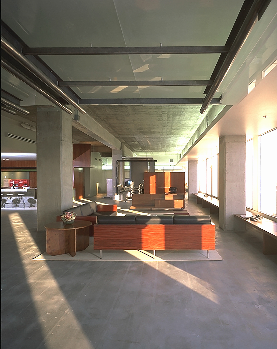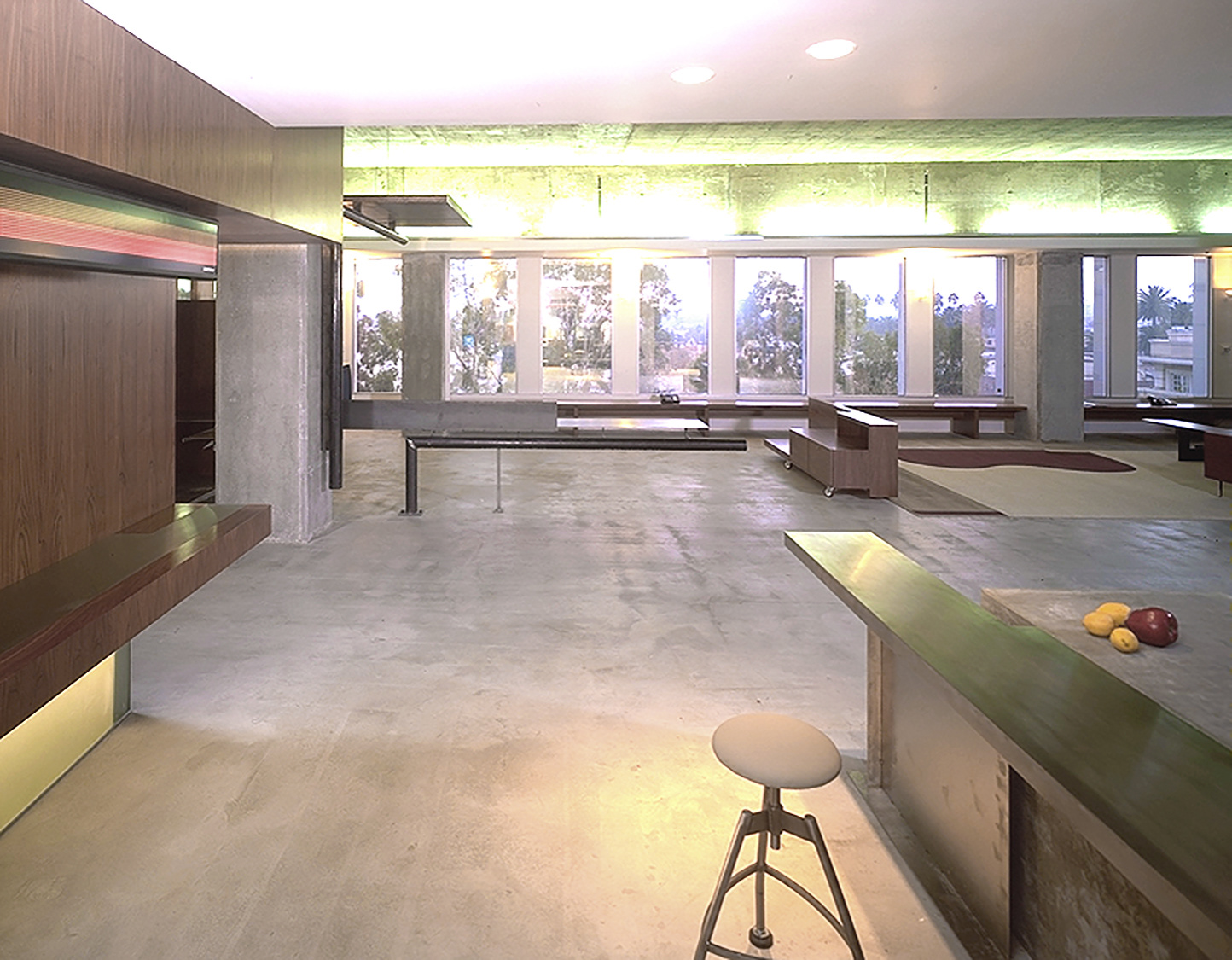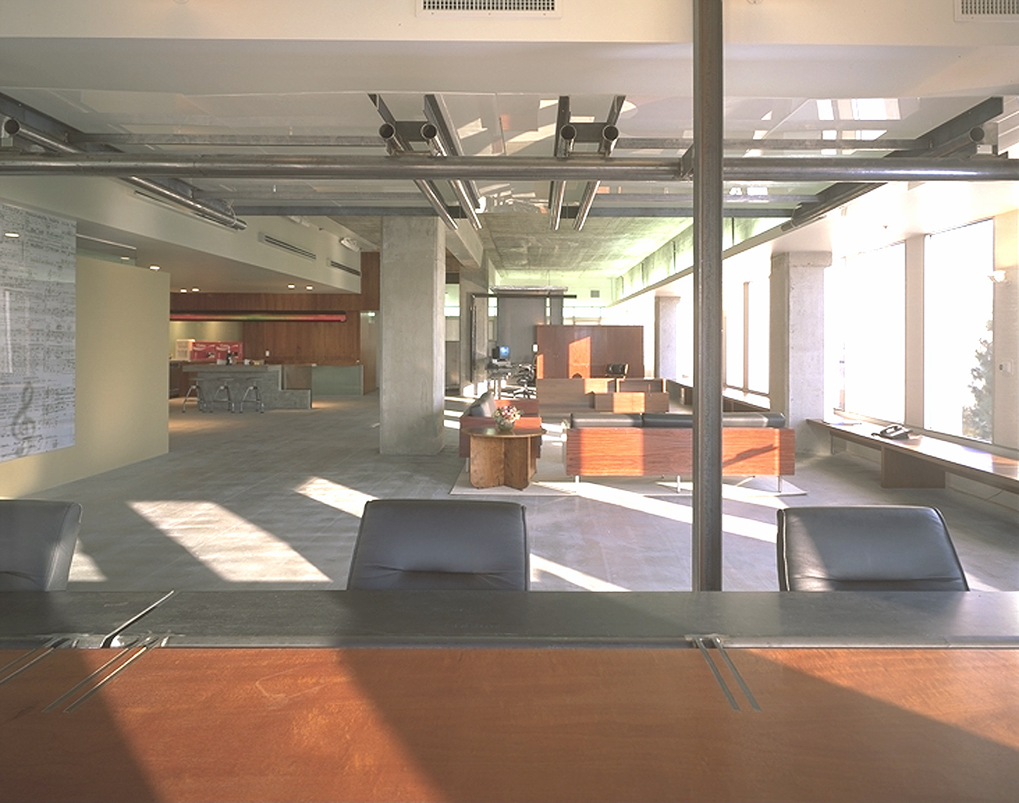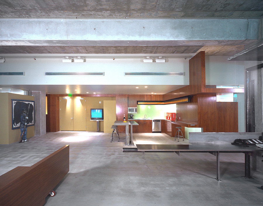 This 14,000 square foot project was to transform an existing commercial interior space into the signature headquarters for a cutting edge artist management company. Located on the 4th floor of a Beverly Hills high-rise, the program includes executive suites for the principals of the company, offices for other members of the executive team, assistants, and support staff, two conference rooms, a kitchen and lounge area, reception and miscellaneous service rooms. The clients for this project needed to occupy a finished space within sixteen weeks from the beginning of the design process. This allowed for a very limited incubation period in which ideas had to be generated and realized. To meet this demand, a systematic working strategy that capitalized on the extreme constraints of the project and a team approach was adopted. Client, contractor and architect collaborated with an unprecedented synergism. Ultimately, the architecture emerged from the inventive and dynamic atmosphere that was cultivated in response to the particular conditions of the project.